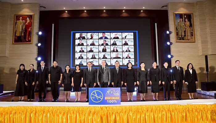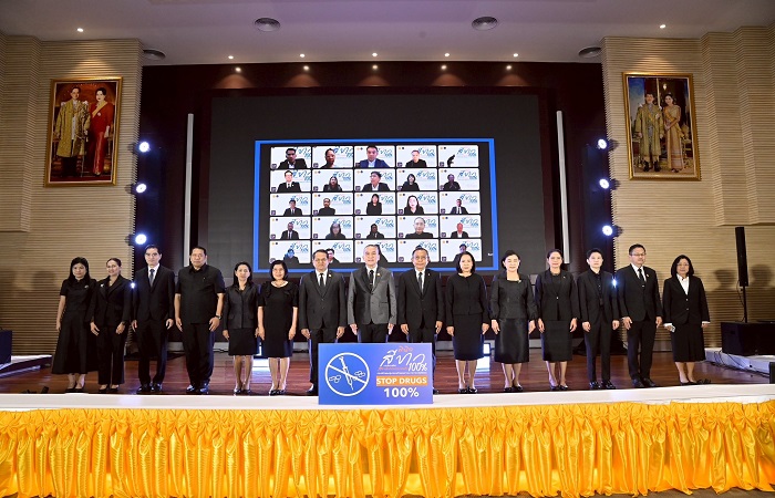 ในโอกาสนี้ รัฐมนตรีว่าการกระทรวงยุติธรรม ได้มอบชุดตรวจสารเสพติดให้กับหน่วยงานภายในสังกัดทั่วประเทศ เพื่อนำไปใช้ในการคัดกรองเจ้าหน้าที่ เด็กและเยาวชนทุกคนอย่างเข้มข้น จากนั้นได้ร่วมประกาศเจตนารมณ์เชิงสัญลักษณ์ผ่านระบบออนไลน์ ร่วมกับ ผู้อำนวยการศูนย์ฝึกและอบรมเด็กและเยาวชน แล ะสถานพินิจและคุ้มครองเด็กและเยาวชนทั่วประเทศ โดยได้รับเกียรติจากหัวหน้าส่วนราชการในสังกัดกระทรวงยุติธรรม ภาคีเครือข่ายในด้านสาธารณสุข ประกอบด้วย ผู้แทนจากกระทรวงสาธารณสุข และผู้แทนจากสถาบันบำบัดรักษาและฟื้นฟูผู้ติดยาเสพติดแห่งชาติบรมราชชนนี ตลอดจนประธานกรรมการสงเคราะห์สำหรับสถานพินิจและคุ้มครองเด็กและเยาวชนจังหวัดกรุงเทพมหานคร จังหวัดนนทบุรี จังหวัดปทุมธานี และแขกผู้มีเกียรติ เข้าร่วมงาน