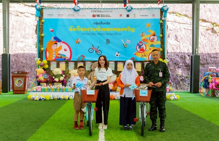 สมกมล จิราธิวัฒน์ ผู้อำนวยการอาวุโส กลุ่มเซ็นทรัล กล่าวว่า “กลุ่มเซ็นทรัล ร่วมกับกองทัพบก ดำเนินโครงการ “มิลเลี่ยนกิฟต์ มิลเลี่ยนสมายล์” อย่างต่อเนื่องเป็นปีที่ 16 เพื่อเชิญชวนคนไทย คู่ค้า ภาคีเครือข่าย และธุรกิจในเครือ ร่วมส่งต่อของขวัญแทนความรักและความห่วงใย มอบให้แก่เยาวชนในพื้นที่ 3 จังหวัดชายแดนภาคใต้และจังหวัดสงขลา เนื่องในโอกาสวันเด็กแห่งชาติและเทศกาลปีใหม่