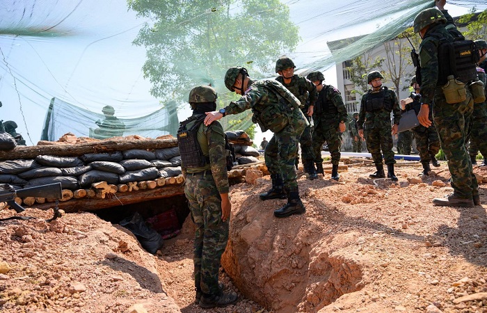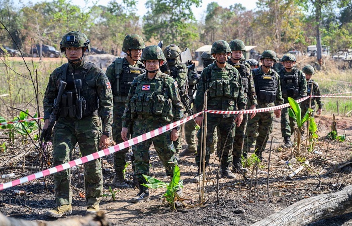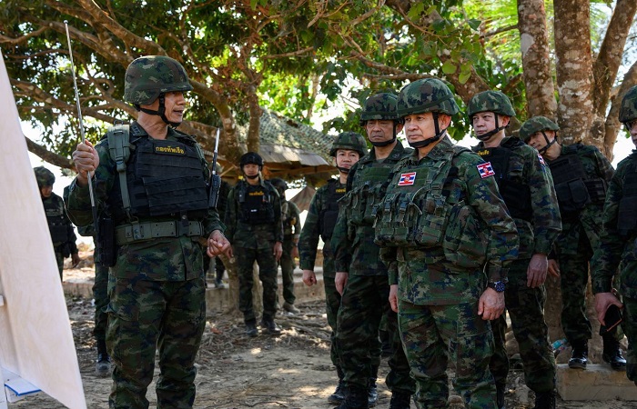 พล.ร.อ.ธาดาวุธ ทัดพิทักษ์กุล เสนาธิการทหารเรือ (เสธ.ทร.) / เสนาธิการศูนย์ปฏิบัติการกองทัพเรือ (เสธ.ศปก.ทร.) พร้อมด้วย คณะนายทหารจากศูนย์ปฏิบัติการกองทัพเรือ และ เจ้ากรมสรรพาวุธทหารเรือ ลงพื้นที่เยี่ยมบำรุงขวัญและให้กำลังใจแก่กำลังพล และติดตามการปฏิบัติงานตามข้อสั่งการของ พล.ร.อ.ไพโรจน์ เฟื่องจันทร์ ผู้บัญชาการทหารเรือ (ผบ.ทร.) ที่ได้ลงพื้นที่เยี่ยมบำรุงขวัญก่อนหน้านี้ ในพื้นที่กองบัญชาการป้องกันชายแดนจันทบุรีและตราด (กปช.จต.) โดยมี พล.ร.ท.อภิชาติ ทรัพย์ประเสริฐ ผู้บัญชาการกองกำลังป้องกันชายแดนจันทบุรีและตราด (ผบ.กปช.จต.) และคณะผู้บังคับบัญชาของ กปช.จต. พร้อมด้วย น.อ.ธรรมนูญ วรรณา ผู้บังคับการหน่วยเฉพาะกิจนาวิกโยธินจังหวัดตราด (ผบ.ฉก.นย.ตราด) นำคณะลงพื้นที่ ณ พื้นที่ท่าเส้น พื้นที่หนองรี จ.ตราด และ หน่วยเฉพาะกิจนาวิกโยธิน 182