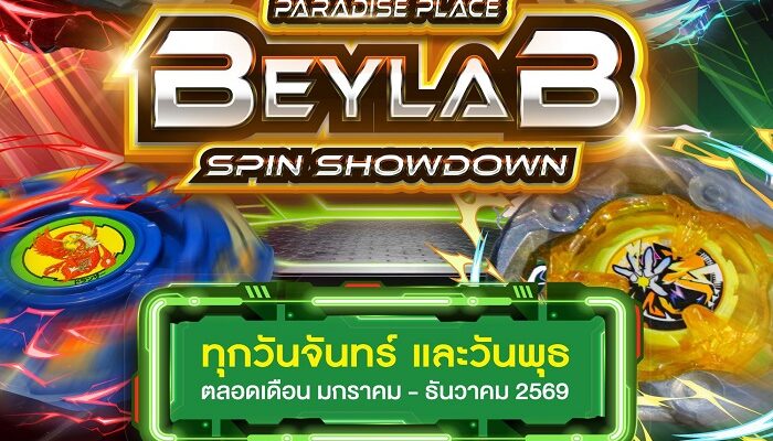 มาร่วมระเบิดความมันส์ได้ทุกวันจันทร์และวันพุธ กับงาน PARADISE PLACE “BEYLAB SPIN SHOWDOWN” ตั้งแต่เดือนมกราคม ถึงเดือนธันวาคม 2569 เวลา 16.00 น. – 20.30 น. ณ ชั้น 2 ลานกิจกรรม ศูนย์การค้าพาราไดซ์ เพลส งานดี ๆ แบบนี้ แฟนเบย์เบลดไม่ควรพลาด!