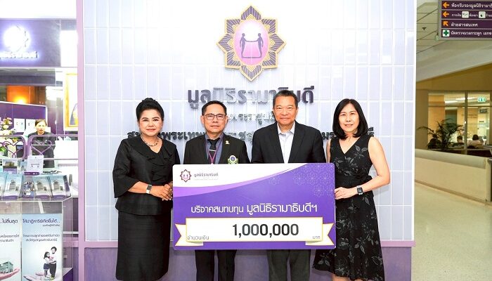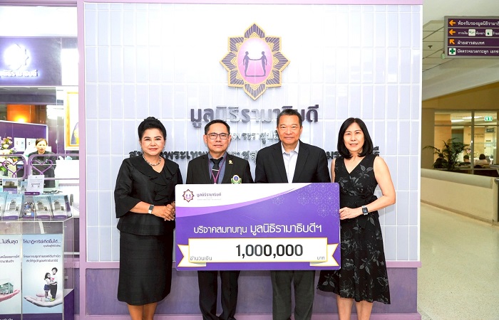 นายวิจักษณ์ ประดิษฐวณิช ประธานเจ้าหน้าที่บริหารและกรรมผู้อำนวยการ บริษัท เอ็ม บี เค จำกัด (มหาชน) (ที่ 3 จากซ้าย) และครอบครัว บริจาคเงิน จำนวน 1,000,000 บาท สมทบทุนมูลนิธิรามาธิบดีฯ เพื่อสร้างอาคารโรงพยาบาลรามาธิบดีย่านนวัตกรรมโยธี โดยมี รศ.นพ.ประกาศิต จิรัปปภา กรรมการบริหารมูลนิธิรามาธิบดีฯ (ที่ 2 จากซ้าย) รับมอบ ณ มูลนิธิรามาธิบดีฯ ชั้น 4 อาคารสมเด็จพระเทพรัตน์ โรงพยาบาลรามาธิบดี เมื่อเร็ว ๆ นี้