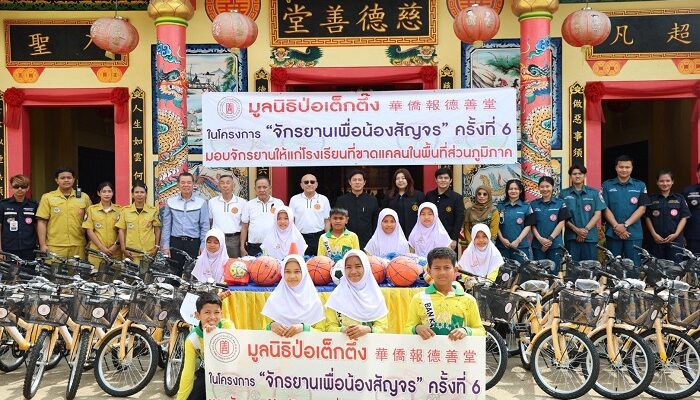 มูลนิธิป่อเต็กตึ๊ง หนุนการศึกษาเยาวชน 100 โรงเรียนในพื้นที่ชนบทภาคกลาง-ใต้ รวม 20 จังหวัด มอบจักรยาน-อุปกรณ์กีฬา ในโครงการ “จักรยานเพื่อน้องสัญจร” ครั้งที่ 6 รวมมูลค่ากว่า 2.85 ล้านบาท เน้นสร้างชีวิตอย่างยั่งยืน