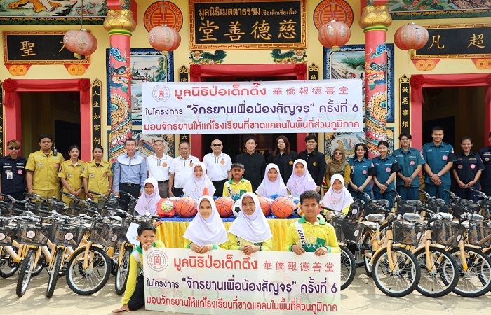 มูลนิธิป่อเต็กตึ๊ง โดย นายวิเชียร เตชะไพบูลย์ ห่วงใยนักเรียนในพื้นที่ชนบทภาคกลางและภาคใต้ มอบหมายให้ คณะกรรมการ และผู้ช่วยกรรมการมูลนิธิฯ นำโดย นายจารุรัตน์ คุณัตถานนท์ กรรมการและเหรัญญิก นายสุรพงศ์ เสรฐภักดี กรรมการและรองเหรัญญิก นายชาญกิจ วิทยาวรากรณ์ กรรมการ นายชูเดช เตชะไพบูลย์ ผู้ช่วยกรรมการ นำทีมฝ่ายสาธารณภัย และฝ่ายสังคมสงเคราะห์ ลงพื้นที่ภาคกลางและภาคใต้ ระหว่างวันที่ 11 พฤศจิกายน 2568 – 22 มกราคม 2569 มอบรถจักรยานพร้อมอุปกรณ์กีฬาและค่าพาหนะให้แก่โรงเรียนชนบทที่ขาดแคลนภาคกลางและภาคใต้ ในโครงการ “จักรยานเพื่อน้องสัญจร” ครั้งที่ 6 รวม 20 จังหวัด 100 โรงเรียน ประกอบด้วย จังหวัดพระนครศรีอยุธยา ลพบุรี ชัยนาท สุพรรณบุรี กาญจนบุรี สมุทรสงคราม ชลบุรี จันทบุรี ตราด สระแก้ว ชุมพร สุราษฎร์ธานี นครศรีธรรมราช พัทลุง ตรัง สตูล สงขลา ปัตตานี ยะลา และ นราธิวาส รวมจำนวนจักรยาน 2,000 คัน อุปกรณ์กีฬา จำนวน 100 ชุด และค่าพาหนะแก่โรงเรียน ๆ ละ 2,000 บาท รวมงบประมาณดำเนินการทั้งสิ้น 2,854,000 บาท (สองล้านแปดแสนห้าหมื่นสี่พันบาทถ้วน) เพื่ออำนวยความสะดวกแก่นักเรียนที่ประสบปัญหาในการเดินทางมาโรงเรียน รวมถึงเป็นการแบ่งเบาภาระค่าพาหนะแก่ผู้ปกครองได้อีกทางหนึ่ง อีกทั้งยังเสริมสร้างให้นักเรียนได้ออกกำลังกาย เรียนรู้กฎจราจร เรียนรู้การแบ่งปัน และดูแลรักษาสาธารณสมบัติร่วมกัน โดยมี ผู้แทนจากหน่วยงานรัฐเป็นประธานในพิธี พร้อมด้วยเยาวชนและผู้แทนจากสถาบันการศึกษา เป็นตัวแทนรับมอบ และสมาคม/มูลนิธิแต่ละจังหวัด เป็นผู้ประสานงานและร่วมในพิธี รวมถึง อาสาสมัครเฉพาะกิจ และ อาสาศิลปินมูลนิธิป่อเต็กตึ๊ง นำโดย นายนเรศ วิทยาวรากรณ์ นายวิวัฒน์ แก้วกำพลกุล และ นายวาทิต อิทธิฤทธิ์โสภา (วินน์) ร่วมลงพื้นที่มอบ