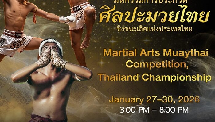 ศูนย์การค้าเอ็ม บี เค เซ็นเตอร์ ร่วมกับ กรมพลศึกษา ชวนชมชวนเชียร์ “มหกรรมการประกวดศิลปะมวยไทย ชิงชนะเลิศแห่งประเทศไทย” (Martial Arts Muaythai Competition, Thailand Championship) ระหว่างวันอังคารที่ 27 – วันศุกร์ที่ 30 มกราคม 2569 ตั้งแต่เวลา 15.00 น. – 20.00 น. ณ ชั้น G ลานกิจกรรมเอ็ม บี เค อเวนิว โซน A
