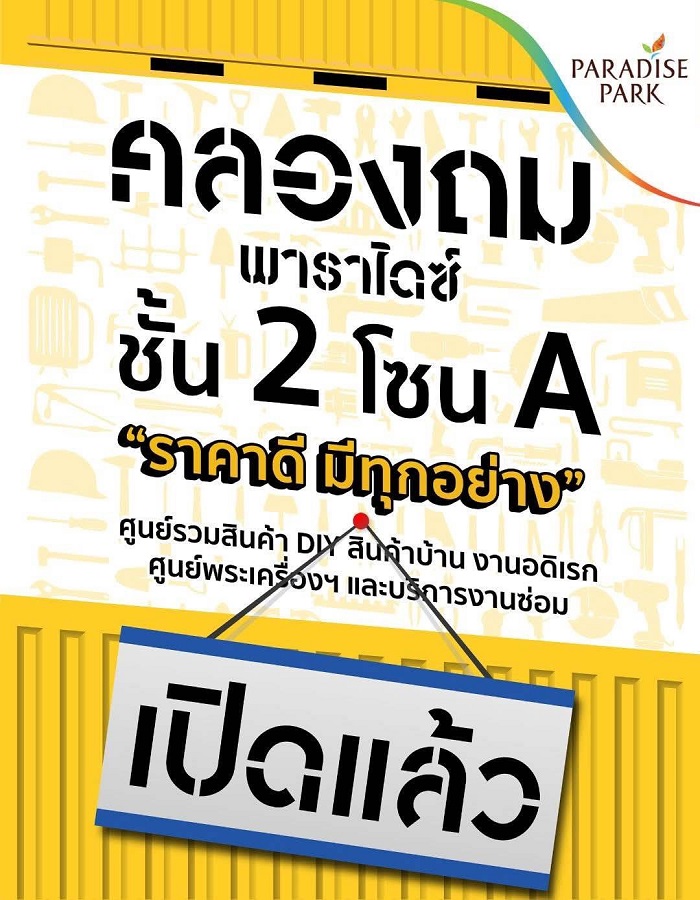 พาราไดซ์ พาร์ค ศูนย์การค้าในเครือเอ็ม บี เค เดินหน้าเสริมความแข็งแกร่ง เพื่อตอบโจทย์ไลฟ์สไตล์และความต้องการของลูกค้าที่หลากหลาย ด้วยการดึงแม็กเนตร้านดังมาเปิดอย่างต่อเนื่อง ล่าสุดดึง คลองถม แหล่งรวมของสะสม เสื้อผ้า ของวินเทจ อุปกรณ์ไอที และไอเท็มสุดชิค มาไว้ใจกลางศูนย์การค้าพาราไดซ์ พาร์ค ภายใต้ชื่อ คลองถม พาราไดซ์ ตลาดนัดขนาดใหญ่บนพื้นที่กว่า 2,000 ตร.ม. มีร้านค้ากว่า 200 บูธ โดยจะเปิดให้บริการแล้ว ณ บริเวณชั้น 2 โซน A (ใกล้ทางเชื่อมพาราไดซ์ เพลส) ศูนย์การค้าพาราไดซ์ พาร์ค