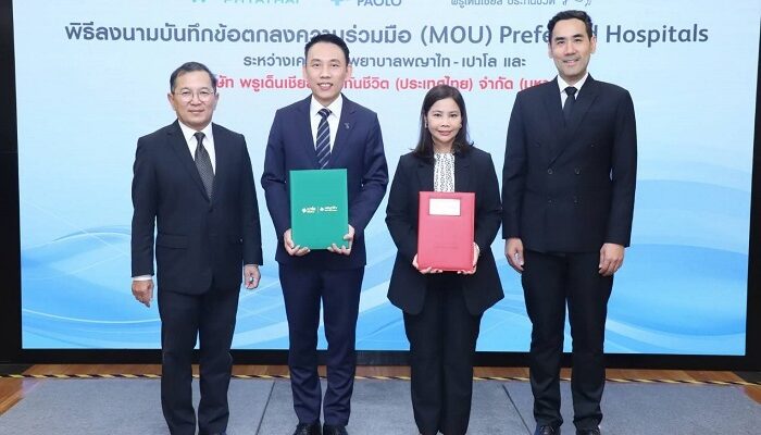 เครือโรงพยาบาลพญาไท-เปาโล เดินหน้าสร้าง “ระบบนิเวศสุขภาพ” (Health Ecosystem) เชื่อมโยงการดูแลสุขภาพเชิงป้องกันสู่การรักษาที่ได้มาตรฐาน ผ่านการลงนามบันทึกข้อตกลงความร่วมมือ (MOU) กับ บริษัท พรูเด็นเชียล ประกันชีวิต (ประเทศไทย) จำกัด (มหาชน) เพื่อยกระดับสิทธิประโยชน์และประสบการณ์ด้านสุขภาพให้แก่ลูกค้าอย่างรอบด้าน โดยมี คุณศุภกร พะวันนา ผู้อำนวยการสายบริหารการตลาด เครือโรงพยาบาลพญาไท-เปาโล และ คุณเปสลารี ธีระสาสน์ ประธานเจ้าหน้าที่บริหารสายงานเทคโนโลยีและปฏิบัติการ และสายงานสุขภาพ พรูเด็นเชียล ประเทศไทย ร่วมลงนาม สะท้อนความร่วมมือเชิงยุทธศาสตร์ระหว่างผู้ให้บริการด้านสุขภาพและธุรกิจประกันชีวิต ณ โรงพยาบาลพญาไท 2