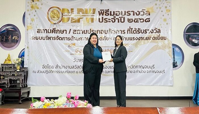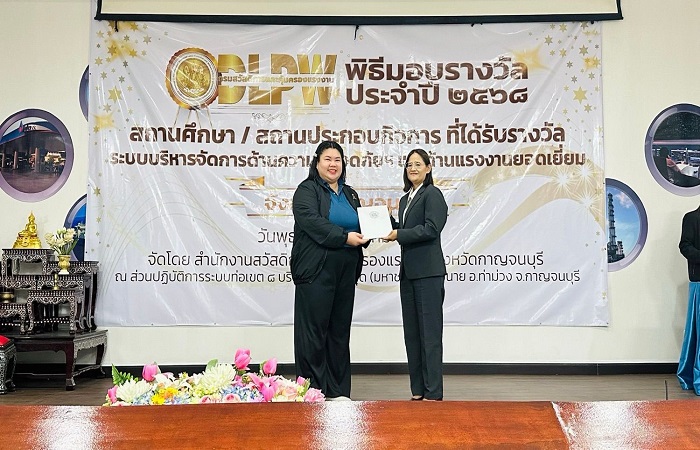 เมื่อเร็ว ๆ นี้ บริษัท เจียไต๋ จำกัด (สถานีวิจัยกาญจนบุรี) รับมอบประกาศนียบัตรมาตรฐานการป้องกันและแก้ไขปัญหายาเสพติดในสถานประกอบกิจการ (มยส.) ประจำปี 2568 จากกรมสวัสดิการและคุ้มครองแรงงาน กระทรวงแรงงาน ณ ศูนย์ปฏิบัติการระบบท่อส่งก๊าซเขต 8 (ปตท.) จ.กาญจนบุรี
