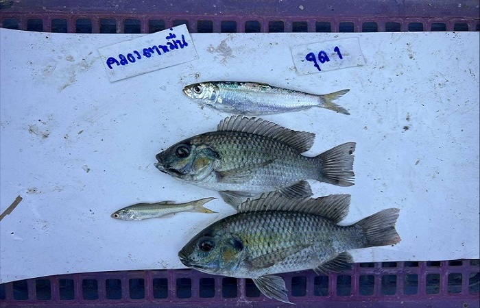 – บริเวณ คลองตาหมื่น (ความเค็ม 10-13 ppt) ตรวจพบปลาหมอคางดำขนาด 10-12 เซนติเมตร ร่วมกับปลากุเรา ปลาหลังเขียว ปลาตะกรับ ปลาขี้จีน และปลากะตัก