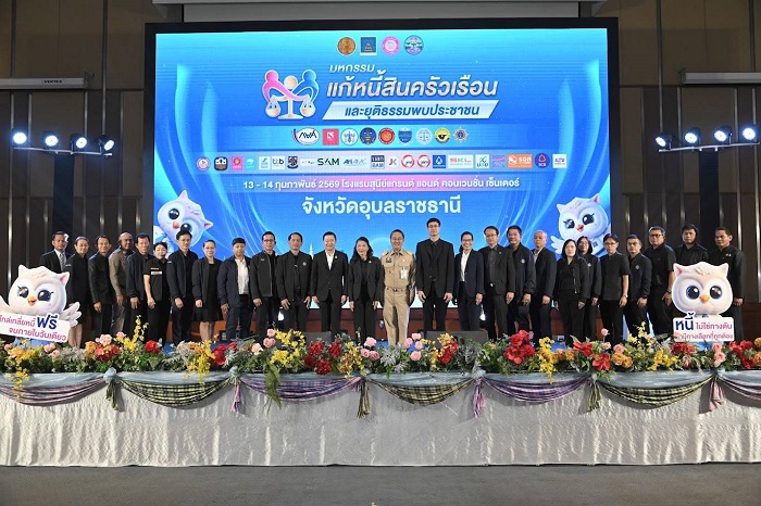 เมื่อวันที่ 13 ก.พ.69 ที่โรงแรมสุนีย์ แกรนด์ แอนด์ คอนเวนชั่น เซ็นเตอร์ จ.อุบลราชธานี นางจิรภา สินธุนาวา รองปลัดกระทรวงยุติธรรม ให้เกียรติเป็นประธานในพิธีเปิด “มหกรรมแก้หนี้สินครัวเรือน และยุติธรรมพบประชาชน” จังหวัดอุบลราชธานี โดยมี นายไตรยฤทธิ์ เตมหิวงศ์ อธิบดีกรมคุ้มครองสิทธิและเสรีภาพ เป็นผู้กล่าวรายงานถึงวัตถุประสงค์การจัดงาน และมี ร.ต.สรมงคล มงคละสิริ รองผู้ว่าราชการจังหวัดอุบลราชธานี กล่าวต้อนรับ นายเฉลิมชัย บัวจันอัด รองอธิบดีกรมบังคับคดี นายภาณุทัตต์ กิตติสารวัณโณ รองอัยการจังหวัด นางสาวปทิตตา โฉมประดิษฐ์ ผู้อำนวยการสำนักงานยุติธรรมจังหวัดอุบลราชธานี นายศุภากร ประกอบวรกาน ยุติธรรมจังหวัดอำนาจเจริญ นายสุทัศน์ วิเชยละ ยุติธรรมจังหวัดศรีสะเกษ นางสาวดุจดาว ธนากรพงษ์ ยุติธรรมจังหวัดยโสธร พร้อมหัวหน้าส่วนราชการสังกัดกระทรวงยุติธรรมและหน่วยงานในพื้นที่ เข้าร่วมเป็นเกียรติ