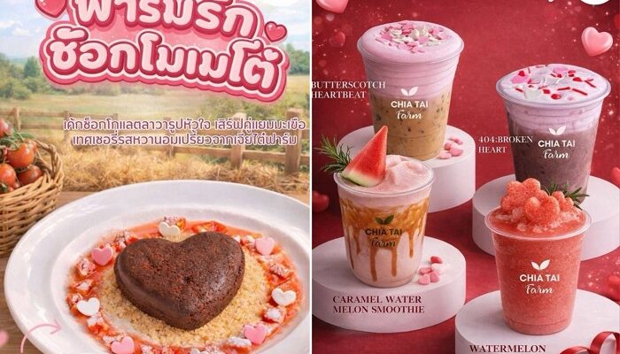วาเลนไทน์นี้ ไม่ว่าจะอยู่ในโหมดอินเลิฟ แอบเศร้า หรือเพียงต้องการเติมความสดชื่น เจียไต๋ฟาร์ม พร้อมเสิร์ฟทุกแก้วและทุกเมนูแล้ว ณ ร้านเจียไต๋ฟาร์ม อีทเทอรี สาขาสุขุมวิท 60 ตั้งแต่วันนี้ – 28 กุมภาพันธ์ 2569 หรือ ติดต่อสอบถามเพิ่มเติมได้ทาง Line @chiataifarm Facebook: https://www.facebook.com/ChiaTaiFarmTH หรือ โทร. 089-139-6170