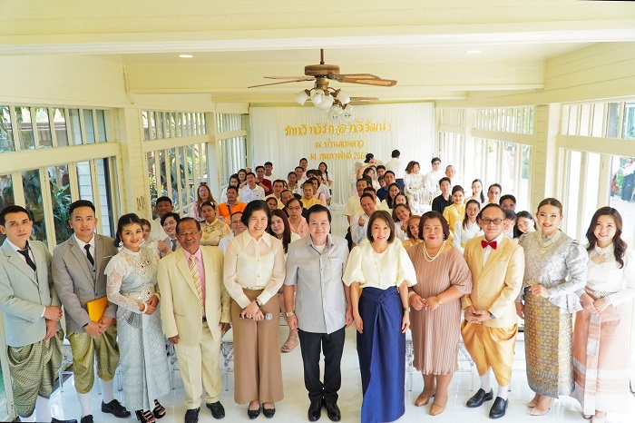 ภายในงานได้มีการนิมนต์พระสงฆ์ร่วมสวดเจริญพุทธมนต์ ให้แก่คู่บ่าวสาวเพื่อความเป็นสิริมงคลในชีวิตสมรส นอกจากนี้ภายในงานยังมีการจัดเลี้ยงให้แก่คู่บ่าวสาวทุกคู่ และมีของชำร่วยและของสมนาคุณแก่คู่บ่าวสาวทุกคู่ที่มาร่วมในงานนี้ โดยมี พ.อ.หญิง บัวบุษบา ยุคลอดิศัย ผู้อำนวยการกองการปกครอง สำนักงานปลัดกระทรวงกลาโหม เข้าร่วมแสดงความยินดีแก่คู่บ่าวสาวทุกคู่ที่มาจดทะเบียนสมรสในวันนี้ ณ บ้านสวนดาว ซึ่งบรรยากาศเป็นไปด้วยความชื่นมื่น มีการบรรเลงดนตรีโดยวง Music Ensemble Thawee-Wattana และ บริการชุดไทยฟรี แก่คู่บ่าวสาวจากร้านบ้านนางชฎา ชุดไทย