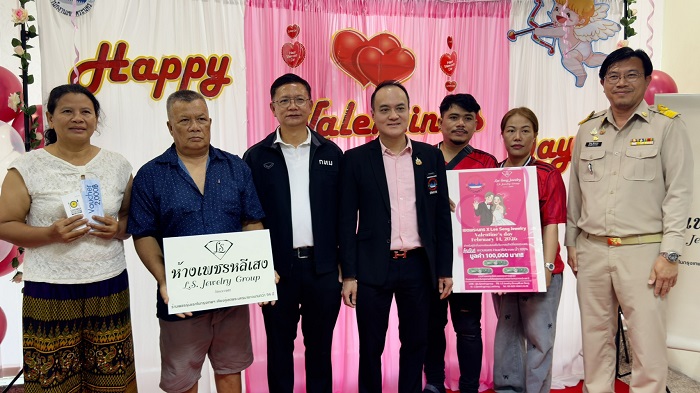 เมื่อวันที่ 14 ก.พ.69 ห้างเพชรหลีเสง (L.S.Jewelry Group) โดย ดร.นฤมล สุรเศรษฐ ดร.พีรวัฒน์ สุรเศรษฐ และ ดร.ธัชวิน สุรเศรษฐ ประธานคคพ.เขตพระนคร-ที่ปรึกษารองผบ.ตร.-ประธานกต.ตร.จว.นนทบุรี-สน.ชนะสงคราม-ที่ปรึกษาประธานคณะกรรมาธิการตำรวจสภาผู้แทนราษฎร มอบแหวนเพชรแท้ธรรมชาติ Heart & Arrow น้ำ 100% จำนวน 3 วง มูลค่า 100,000 บาท ให้แก่คู่รักผู้โชคดีที่จดทะเบียนสมรส ในวันวาเลนไทน์ โดยมี นายสยามรัฐ เรืองนาม ผู้อำนวยการเขตพระนคร, นายปิยชน ผู้ทรงธรรม ผู้ช่วยผู้อำนวยการเขต, นางสาวธีร์นานา ธรรมสุบัลลังก์ หัวหน้าฝ่ายทะเบียน และเจ้าหน้าที่สำนักงานเขตพระนคร ร่วมแสดงความยินดีแก่คู่รักผู้โชคดี ณ สำนักงานเขตพระนคร