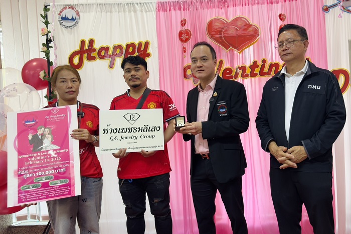 เมื่อวันที่ 14 ก.พ.69 ห้างเพชรหลีเสง (L.S.Jewelry Group) โดย ดร.นฤมล สุรเศรษฐ ดร.พีรวัฒน์ สุรเศรษฐ และ ดร.ธัชวิน สุรเศรษฐ ประธานคคพ.เขตพระนคร-ที่ปรึกษารองผบ.ตร.-ประธานกต.ตร.จว.นนทบุรี-สน.ชนะสงคราม-ที่ปรึกษาประธานคณะกรรมาธิการตำรวจสภาผู้แทนราษฎร มอบแหวนเพชรแท้ธรรมชาติ Heart & Arrow น้ำ 100% จำนวน 3 วง มูลค่า 100,000 บาท ให้แก่คู่รักผู้โชคดีที่จดทะเบียนสมรส ในวันวาเลนไทน์ โดยมี นายสยามรัฐ เรืองนาม ผู้อำนวยการเขตพระนคร, นายปิยชน ผู้ทรงธรรม ผู้ช่วยผู้อำนวยการเขต, นางสาวธีร์นานา ธรรมสุบัลลังก์ หัวหน้าฝ่ายทะเบียน และเจ้าหน้าที่สำนักงานเขตพระนคร ร่วมแสดงความยินดีแก่คู่รักผู้โชคดี ณ สำนักงานเขตพระนคร