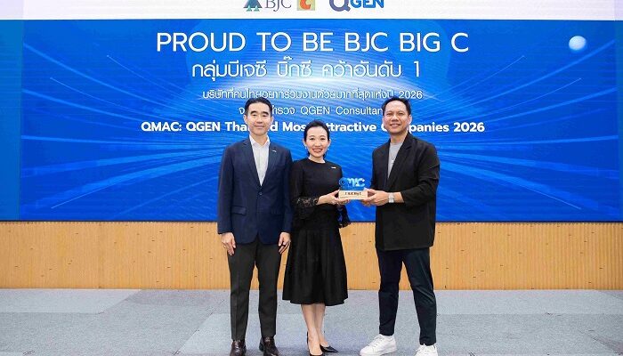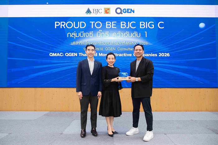 กลุ่มบีเจซี บิ๊กซี สร้างปรากฏการณ์ครั้งสำคัญในตลาดแรงงานไทย หลังได้รับการจัดอันดับให้ครอง อันดับ 1 จาก 55 บริษัท ที่คนไทยอยากร่วมงานด้วยมากที่สุด ประจำปี 2569 จากเวที “QMAC: QGEN Thailand Most Attractive Companies 2026” โดย QGEN Consultant บริษัทที่ปรึกษาด้าน People & Organization ชั้นนำของประเทศไทย ผู้เชี่ยวชาญด้านกลยุทธ์บุคลากร การสำรวจ Employee Experience และการวิเคราะห์ภาพลักษณ์นายจ้าง (Employer Branding) ที่ได้รับความเชื่อถือจากองค์กรชั้นนำทั่วประเทศ รางวัลดังกล่าวสะท้อนมุมมองของคนทำงานและคนรุ่นใหม่ทั่วประเทศ ที่ให้ความเชื่อมั่นต่อองค์กรที่มีวัฒนธรรมเปิดกว้าง ใส่ใจการพัฒนาศักยภาพบุคลากร และสร้างสภาพแวดล้อมการทำงานที่ยั่งยืน