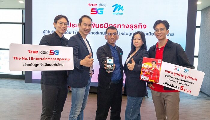 สำหรับชาวเมียนมา กว่า 4 ล้านคน ที่อาศัย และทำงานอยู่ในประเทศไทย “บ้าน” อาจอยู่ห่างไกล แต่ความผูกพันกับภาษา และ ละครจากบ้านเกิดยังคงอยู่เสมอ ทรู 5G โดย คุณภูริโชติ วงศ์โกมลเชษฐ์ หัวหน้าฝ่ายบริการดิจิทัล บมจ. ทรู คอร์ปอเรชั่น และ คุณรษิกา สถีระนาวิน หัวหน้าฝ่ายการตลาดกลุ่มคนเข้าเมือง นักท่องเที่ยว และ นักเรียน ตอกย้ำความมุ่งมั่นในการเป็นเครือข่ายอันดับ 1 พร้อมเป็นผู้นำด้านความบันเทิง ที่ครองใจผู้ใช้งานชาวเมียนมาในประเทศไทย จึงประกาศความร่วมมือครั้งสำคัญกับ Mahar (มะหะ) โดย คุณวิน ไคล์ (Mr. Win Khine) ผู้ก่อตั้งและประธานเจ้าหน้าที่บริหาร แอปพลิเคชันความบันเทิงยอดนิยมอันดับหนึ่งจากประเทศเมียนมา เพื่อส่งมอบประสบการณ์ดิจิทัลที่ช่วยคลายความคิดถึงบ้านด้วยคอนเทนต์ยอดนิยมที่ส่งตรงจากบ้านเกิดสู่หน้าจอสมาร์ทโฟนในไทย เป็นครั้งแรกและรายเดียวในประเทศ