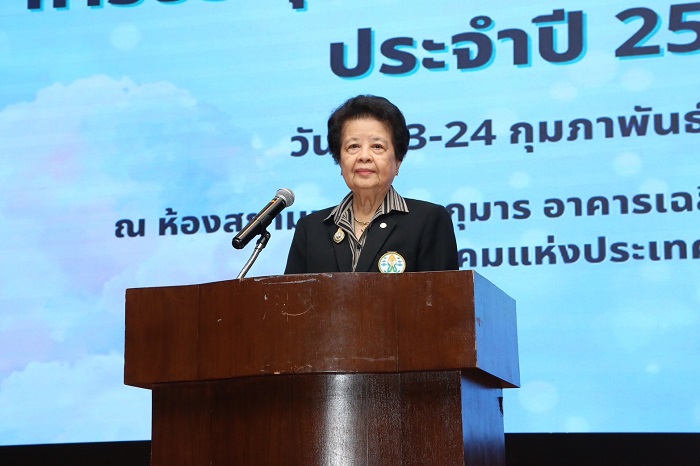 เมื่อเวลา 08.30 น. วันที่ 23 ก.พ.69 ที่ห้องสยามมกุฎราชกุมาร ห้องพัชรกิติยาภา ชั้น 3 อาคารเฉลิมพระบารมี 50 ปี ศ.เกียรติคุณ พญ.สมศรี เผ่าสวัสดิ์ นายกแพทยสภา ประธานเครือข่ายวิชาชีพสุขภาพเพื่อสังคมไทยปลอดบุหรี่ เป็นประธานในพิธีเปิดการประชุมมหกรรมวิชาการฟ้าใส สถาบันอุดมศึกษาปลอดบุหรี่ 2569 ครั้งที่ 16 มี คณะกรรมการและเครือข่ายวิชาชีพต่าง ๆ ร่วมในการประชุม ในครั้งนี้ โดยมี รศ.นพ.สุทัศน์ รุ่งเรืองหิรัญญา เลขาธิการเครือข่ายวิชาชีพแพทย์ในการควบคุมการบริโภคยาสูบ กล่าวรายงาน และ นายสมชาย โต๊ะอีสอ ดำเนินรายการ