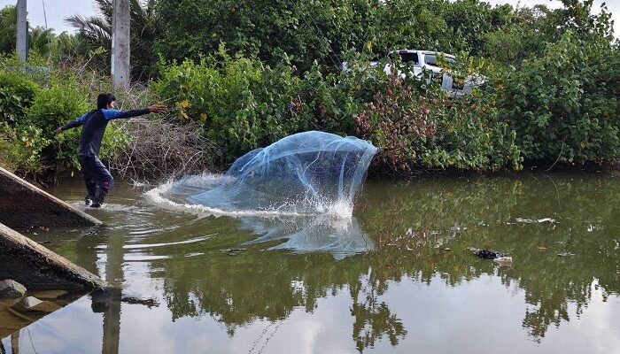 สำนักงานประมงจังหวัดนครศรีธรรมราช ลงพื้นที่หมู่ที่ 8 และ หมู่ที่ 9 ต.ขนาบนาก อ.ปากพนัง เพื่อติดตามสถานการณ์ปลาต่างถิ่นและสำรวจความหนาแน่นของปลาหมอคางดำในแหล่งน้ำธรรมชาติ หลังมีการพูดถึงสถานการณ์ในพื้นที่อย่างต่อเนื่อง