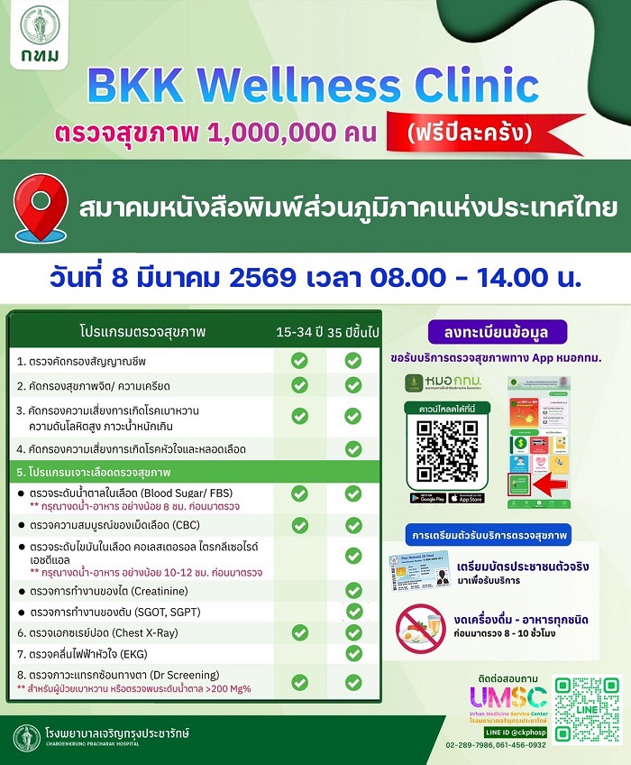 ทั้งนี้ ขอเชิญสมาชิกสมาคมฯ พี่น้องสื่อมวลชน และประชาชนใกล้เคียง ร่วมตรวจสุขภาพประจำปี เพื่อดูแลสุขภาพของตนเอง เพราะ “สุขภาพดี คือ พลังของคนข่าว”