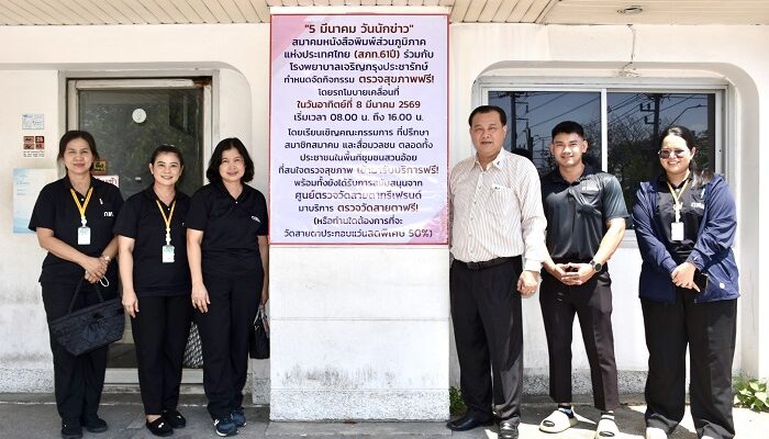 วันนี้ (2 มี.ค.69) ณ ที่ทำการสมาคมหนังสือพิมพ์ส่วนภูมิภาคแห่งประเทศไทย เขตดุสิต กรุงเทพฯ นายอนันต์ นิลมานนท์ นายกสมาคมหนังสือพิมพ์ส่วนภูมิภาคแห่งประเทศไทย (สภท.61 ปี) เปิดเผยว่า เนื่องในโอกาส “วันนักข่าว 5 มีนาคม” ประจำปี 2569 สมาคมฯ ได้ร่วมกับ โรงพยาบาลเจริญกรุงประชารักษ์ จัดกิจกรรมตรวจสุขภาพฟรี! ให้กับสมาชิกสื่อมวลชน และประชาชนในพื้นที่ใกล้เคียง
