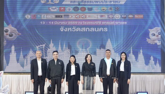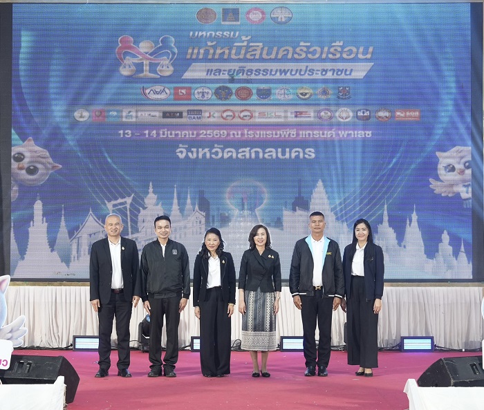 วันนี้ (13 มี.ค.69) ที่โรงแรมพีซี แกรนด์ พาเลซ ต.ธาตุเชิงชุม อ.เมืองสกลนคร จ.สกลนคร นางจิรภา สินธุนาวา รองปลัดกระทรวงยุติธรรม ให้เกียรติเป็นประธานในพิธีเปิดงาน “มหกรรมแก้หนี้สินครัวเรือน และยุติธรรมพบประชาชน” จ.สกลนคร โดยมี นายธีรยุทธ แก้วสิงห์ รองอธิบดีกรมคุ้มครองสิทธิและเสรีภาพ กล่าวรายงาน และมี นางรณิดา เหลืองฐิติสกุล ผู้ว่าราชการจังหวัดสกลนคร พร้อมด้วย ผู้บริหารหน่วยงานในสังกัดกระทรวงยุติธรรม และหน่วยงานในพื้นที่ เข้าร่วมเป็นเกียรติ