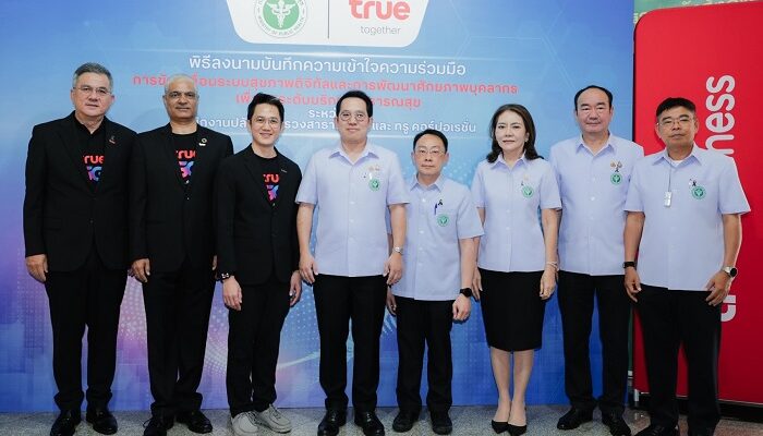 นายพัฒนา พร้อมพัฒน์ รัฐมนตรีว่าการกระทรวงสาธารณสุข เป็นประธานในพิธีลงนามบันทึกความเข้าใจความร่วมมือในการขับเคลื่อนระบบสุขภาพดิจิทัลและการพัฒนาศักยภาพบุคลากร เพื่อยกระดับบริการสาธารณสุข ระหว่าง สำนักงานปลัดกระทรวงสาธารณสุข และ ทรู คอร์ปอเรชั่น ผนึกกำลังขับเคลื่อนระบบสาธารณสุขไทยเข้าสู่ยุคดิจิทัลเต็มรูปแบบ ภายใต้วิสัยทัศน์ที่มุ่งเน้นการสร้างระบบนิเวศสุขภาพอัจฉริยะที่ไร้รอยต่อ โดยผสานพลังนวัตกรรมโครงข่าย 5G และเทคโนโลยี AI ยกระดับมาตรฐานการดูแลสุขภาพเชิงรุกผ่านแพลตฟอร์ม “หมอพร้อม Super App” ผ่านความร่วมมือ 3 ด้าน คือ 1) สนับสนุนแคมเปญสุขภาพ “Healthy Life” บนหมอพร้อม Super App เปลี่ยนสู่การดูแลสุขภาพเชิงรุก นำ “หมอพร้อมเครดิต” ที่ได้จากการเดิน มาแลกรับสิทธิประโยชน์จากทรู 2) ลดความเหลื่อมล้ำ ส่งเสริมการเข้าถึงบริการด้านสุขภาพผ่าน “หมอพร้อม Super App” ให้ลูกค้าทรู ดีแทคทั่วประเทศใช้งานแอปฯ “หมอพร้อม” โดยไม่คิดค่าบริการดาต้า เป็นระยะเวลา 1 ปี และ 3) ยกระดับทักษะบุคลากรของกระทรวงสาธารณสุขในยุคดิจิทัล ร่วมปักหมุดประเทศไทยสู่การเป็นศูนย์กลางนวัตกรรมสุขภาพระดับสากล
