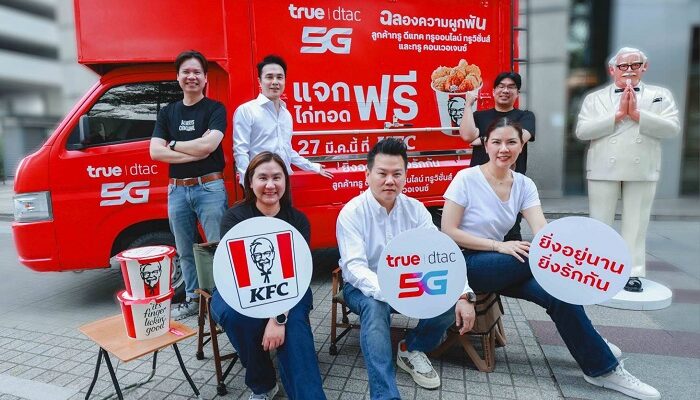 เพราะทุกความผูกพันมีความหมาย… ทรู คอร์ปอเรชั่น โดย คุณโอลิเวอร์ กิตติพงษ์ วีระเตชะ หัวหน้าคณะผู้บริหารด้านแบรนด์และการสื่อสาร พร้อมด้วย คุณสรรค์พิจิตร เอี่ยมชีรางกูร หัวหน้าสายงานบริหารจัดการลูกค้าสัมพันธ์และสิทธิประโยชน์ และ คุณโรจน์ เดโชดมพันธ์ หัวหน้าสายงานโมบายล์ โพสต์เพย์ เดินหน้าอัพความสุข ฉลองความผูกพันให้ลูกค้าคนสำคัญ จับมือกับ KFC โดย คุณเจริญชัย บำรุงวงศ์ทอง ประธานเจ้าหน้าที่ฝ่ายการตลาด บริษัท เรสเทอรองตส์ ดีเวลลอปเม้นท์ จำกัด พร้อม คุณกิรณา ฤกษ์บางพลัด ผู้จัดการอาวุโส – KFC บริษัท เดอะ คิวเอสอาร์ ออฟ เอเชีย จำกัด และ คุณชยธร อาทรสมบัติ ผู้อำนวยการฝ่ายการตลาดเคเอฟซี บริษัท เซ็นทรัล เรสตอรองส์ กรุ๊ป จำกัด เดินหน้าอัพความสุข ฉลองความผูกพันให้ลูกค้าคนสำคัญ ส่งความสุขคำโตในแคมเปญ “อิ่มกับทรู ยิ่งอยู่นาน ยิ่งรักกัน ฉลองความผูกพัน” ซึ่งสานต่อความสำเร็จจากแคมเปญ “ยิ่งอยู่นาน…ยิ่งรักกัน” มอบประสบการณ์สุดพิเศษเพื่อขอบคุณลูกค้าที่อยู่เคียงข้างกันมาอย่างยาวนาน ทั้งลูกค้าทรู 5G , ดีแทค 5G , ทรูออนไลน์ , ทรูวิชั่นส์ และ ทรู คอนเวอร์เจนซ์ ให้ลูกค้าคนสำคัญทุกเพศทุกวัยได้อิ่มเอม และแบ่งปันช่วงเวลาดี ๆ รับสิทธิ์ ฟรี! ไก่ทอดเคเอฟซีรวมกว่า 400,000 ชิ้นทั่วประเทศ ตรวจสอบสิทธิ์ได้ตั้งแต่วันที่ 19 – 25 มี.ค. 69 ผ่านทรูแอป หรือ เว็บไซต์ https://ss.true.th/s/AOUKFC โดยเลือกรับความสุขได้เองใน 2 รูปแบบ