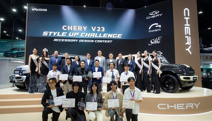 เชอรี ประเทศไทย ร่วมกับ สมาคมวิศวกรรมยานยนต์ไทย บริษัท กรังด์ปรีซ์ อินเตอร์เนชั่นแนล จำกัด (มหาชน) และ สมาคมผู้สื่อข่าวรถยนต์และรถจักรยานยนต์ไทย (สรยท.) จัดพิธีมอบรางวัลโครงการประกวดออกแบบอุปกรณ์ตกแต่งรถยนต์ “Chery V23 Style Up Challenge” อย่างเป็นทางการ ณ บูธรถยนต์ CHERY ภายในงานบางกอก อินเตอร์เนชั่นแนล มอเตอร์โชว์ ครั้งที่ 47 อาคารชาเลนเจอร์ 1-3 อิมแพ็ค เมืองทองธานี ท่ามกลางบรรยากาศคึกคัก โดยมีผู้บริหาร พันธมิตรในอุตสาหกรรม และสื่อมวลชน ร่วมเป็นสักขีพยาน