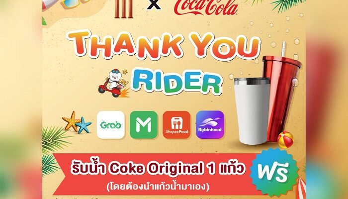 เมเจอร์ ซีนีเพล็กซ์ กรุ้ป จับมือ ไทยน้ำทิพย์ จัดแคมเปญ “Major x Coke Thank You Riders” ส่งต่อความสดชื่นมอบโค้กฟรีคลายร้อนให้ไรเดอร์ทั่วประเทศแทนคำขอบคุณ