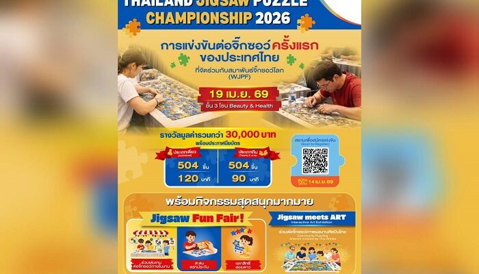 อย่าพลาด! มาลุ้น มาสนุก และมาเป็นส่วนหนึ่งในการแข่งขันจิ๊กซอว์ครั้งแรกของไทย! งาน “Thailand Jigsaw Puzzle Championship 2026” ที่รวมไหวพริบ ความเร็ว และความสนุกไว้ในที่เดียว ในวันอาทิตย์ที่ 19 เมษายน 2569 เวลา 10.00 น. – 16.00 น. ณ ชั้น 3 โซน Beauty & Health ศูนย์การค้าพาราไดซ์ พาร์ค