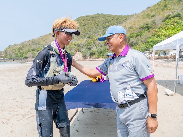 วันนี้ (19 เม.ย.69) พล.ร.อ.ไพโรจน์ เฟื่องจันทร์ ผู้บัญชาการทหารเรือ (ผบ.ทร.) ในฐานะนายกสมาคมกีฬาแข่งเรือใบแห่งประเทศไทย ในพระบรมราชูปถัมภ์ ให้การต้อนรับพร้อมทั้งมอบเหรียญที่ระลึก ให้กับนักกีฬาเรือใบทางไกล และ เรือใบข้ามอ่าว ที่เข้าร่วมแข่งขันเรือใบทางไกล ครั้งที่ 43 ในรายการเรือใบข้ามอ่าว ณ หาดเตยงาม อ่าวนาวิกโยธิน อ.สัตหีบ จ.ชลบุรี ซึ่งการแข่งขันในครั้งนี้มีนักกีฬาเรือใบอาวุโสที่เข้าร่วมการแข่งขันเรือใบทางไกล ประกอบด้วย พล.ร.ต.สุนันท์ มนธาตุผลิน อายุ 92 ปี พล.ร.อ.สมหวัง พิมลพรรณ อายุ 92 ปี โดยผู้เข้าเส้น ในประเภทอาวุโสเป็นอันดับที่หนึ่งคือ น.อ.ประยุทธ์ ใจบรรจง อายุ 77 ปี