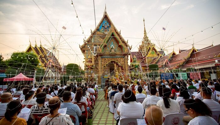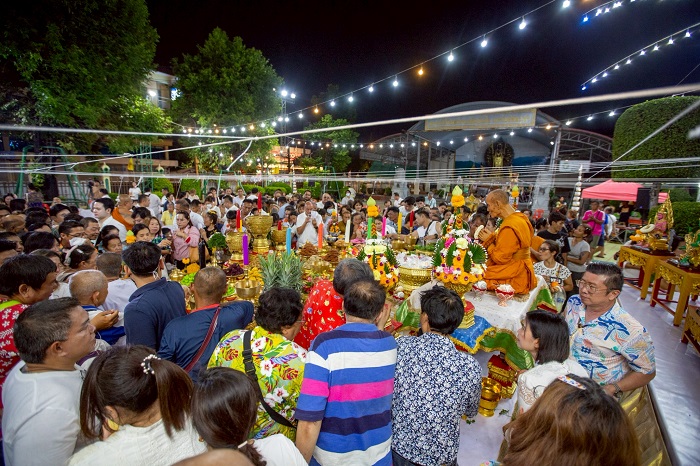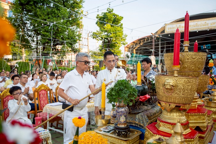 โดยในพิธีได้อัญเชิญ ‘พระพุทธประทานอภัย’ เป็นองค์ประธาน ประกอบด้วย 9 องค์เทพยาดา ตั้งเรียงรายอยู่ด้านล่าง และมีรูปหล่อเสมือนจริงของ พระเดชพระคุณ หลวงพ่อพูล อัตตรักโข อดีตเจ้าอาวาสวัดไผ่ล้อมรูปแรก นั่งเป็นองค์สักขีพยาน ซึ่งมีมหาสังข์เรียกทรัพย์ ตั้งไว้บนโต๊ะบวงสรวงในพิธี เพื่อความเป็นสิริมงคล ท่ามกลางผู้เข้าร่วมพิธีเต็มพื้นที่บริเวณหน้าพระอุโบสถ