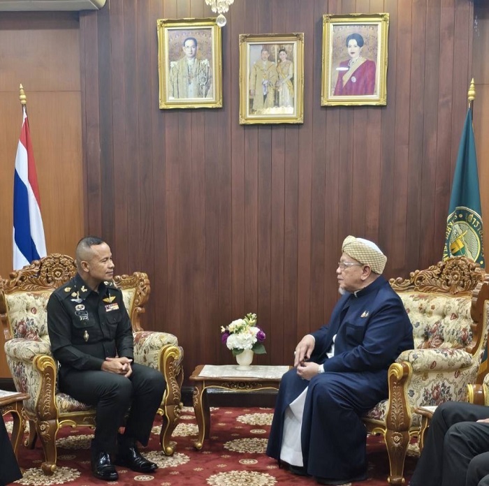 วันนี้ (23 เม.ย.69) เวลา 10.30 น. ณ ห้องรับรองสำนักจุฬาราชมนตรี นายอรุณ บุญชม จุฬาราชมนตรี ให้การต้อนรับ พล.ท.นรธิป โพยนอก แม่ทัพภาคที่ 4 และทำหน้าที่ ผู้อำนวยการรักษาความมั่นคงภายในภาค 4 (ผอ.รมน.ภาค 4) ในโอกาสเข้าเยี่ยมคารวะและหารือข้อราชการ พร้อมแลกเปลี่ยนความคิดเห็น ตลอดจนรับฟังข้อเสนอแนะแนวทางการดำเนินงานด้านกิจการศาสนาอิสลาม