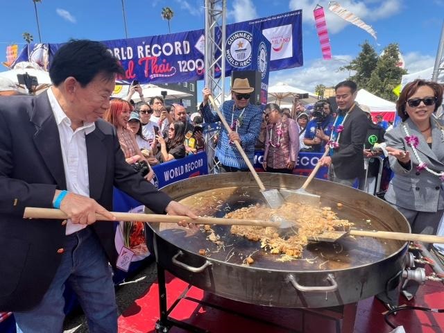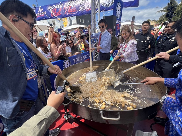ในเวลา 11.00 น. เริ่มกิจกรรมไฮไลท์ของงาน คือ การทำสถิติโลกขายผัดไทย อาหารที่ได้รับความนิยมระดับโลก จำนวน 1,200 กล่อง ภายในเวลา 1 ชั่วโมง โดยเชิญทีมงานกินเนสเวิลด์ มาบันทึกการทำสถิติโลก มี คุณหญิงสุดารัตน์ เกยุราพันธ์ อดีต รมว.สาธารณสุข, นายสมใจนึก เองตระกูล อดีตปลัดกระทรวงการคลัง, นายพิธา ลิ้มเจริญรัตน์ อดีตหัวหน้าพรรคก้าวไกล, นายต่อ ศรลัมพ์ กงสุลใหญ่ฯ, นายนภดล วงศ์ชัยวัฒน์ ประธานเจ้าหน้าที่บริหารไทยนิวเยียร์ฯ พร้อมทั้งนักการเมืองอเมริกัน และบุคคลจากวงการต่าง ๆ รวมทั้งผู้ไปร่วมงานได้เข้าร่วมทำสถิติโลกครั้งนี้ด้วย โดยเชฟจาก 48 ร้านดัง มาร่วมทำผัดไทยขาย
