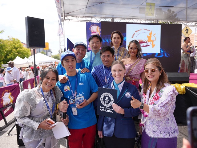 งาน “ไทยนิวเยียร์ : สงกรานต์เฟสติวัล 2026” ปิดถนนฮอลลีวูด นครลอสแอนเจลิส สหรัฐฯ จัดงานยาว 3 กม. คนเนืองแน่นร่วมงานกว่า 2 แสนคน ผัดไทยทำยอดขายสร้างสถิติโลกสำเร็จ คุณหญิงหน่อย-พิธา-เป็ก ร่วมโชว์ผัดไทยกระทะใหญ่ด้วย