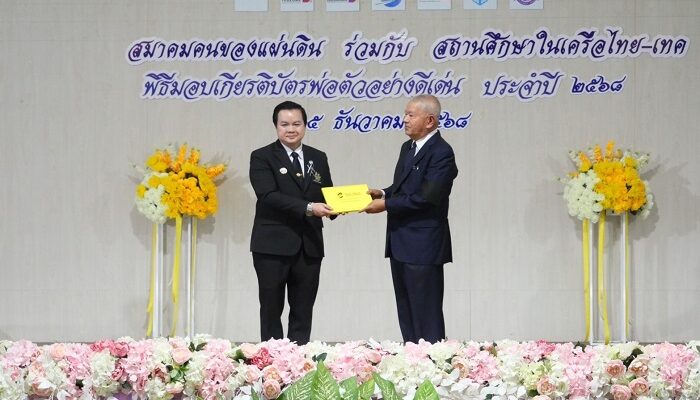 สมาคมคนของแผ่นดิน ร่วมกับ สถานศึกษาในเครือไทย-เทค จัดพิธีมอบเกียรติบัตรพ่อตัวอย่างดีเด่น’68