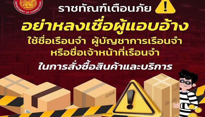 “ราชทัณฑ์” เตือนภัย! อย่าหลงเชื่อแอบอ้างชื่อ “เรือนจำ-ผบ.เรือนจำ” สั่งซื้อสินค้าโอนเงินค่ามัดจำ